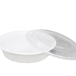 24oz ROUND MICROWAVE SAFE CONTAINER WHITE BASE CLEAR LID 150/case